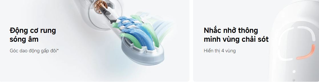 Bàn chải sử dụng chuyển động rung kết hợp xoay, giúp đầu bàn chải tiếp cận tốt từng kẽ răng, loại bỏ mảng bám và cặn thức ăn hiệu quả hơn, hỗ trợ bảo vệ men răng và nướu.