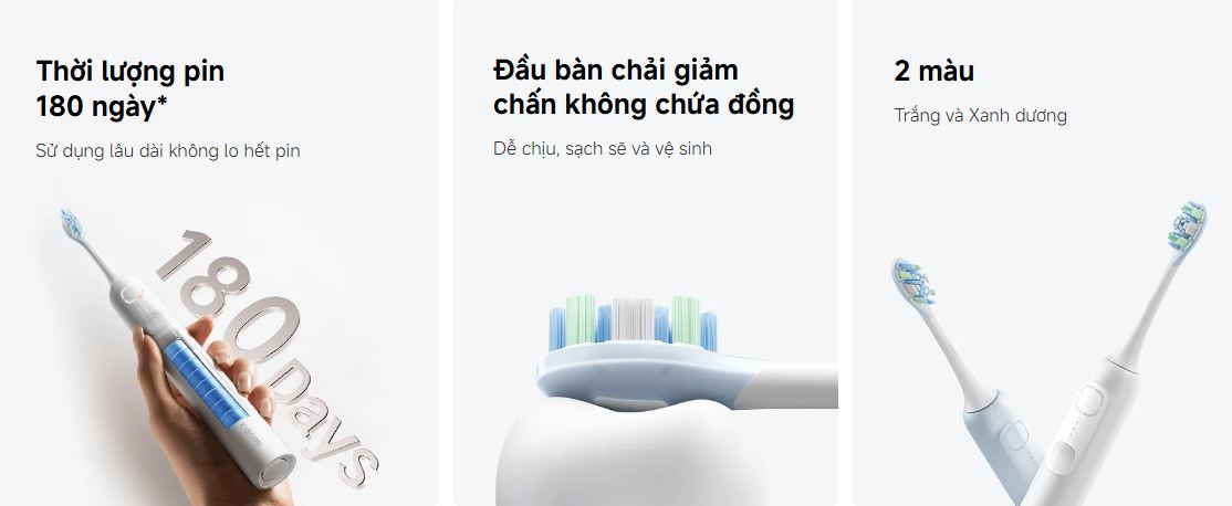 Thiết kế tối giản, dễ sử dụng cùng nhiều chế độ chải phù hợp cho cả người mới dùng bàn chải điện lẫn người đã quen chăm sóc răng miệng chuyên sâu.