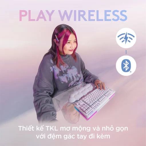 Luôn trong trạng thái chơi với kết nối LIGHTSPEED không dây siêu nhạy. Chuyển sang chế độ Bluetooth với một nút. Tận hưởng thời lượng pin 25 giờ chơi game (Thời lượng pin được đánh giá với mức sáng tối đa của tất cả các đèn LED, sử dụng cho tới lúc hết pin. Có thể thay đổi tùy theo người dùng, đặc điểm xả pin và điều kiện sử dụng máy tính.) trên bàn làm việc, trên đùi, trên ghế sô-pha, trong không gian khác.