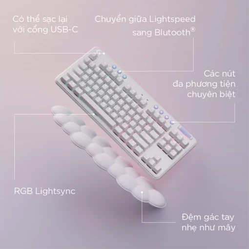 Cắm sạc bất cứ lúc nào bạn muốn bằng dây USB-C tới USB-A đi kèm để sạc pin, hoặc giữ ở chế độ có dây. Bạn cũng có thể kết nối cả G715 và Chuột Chơi game Không dây G705 bằng cùng đầu thu USB LIGHTSPEED. Tiết kiệm cổng USB và tận hưởng chiếc bàn làm việc gọn gàng mà không mất hiệu suất.