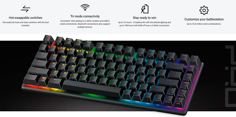 Với thiết kế 75% nhỏ gọn, switch cơ học tuyến tính và đèn RGB rực rỡ, đây là lựa chọn hoàn hảo cho không gian gaming hiện đại.