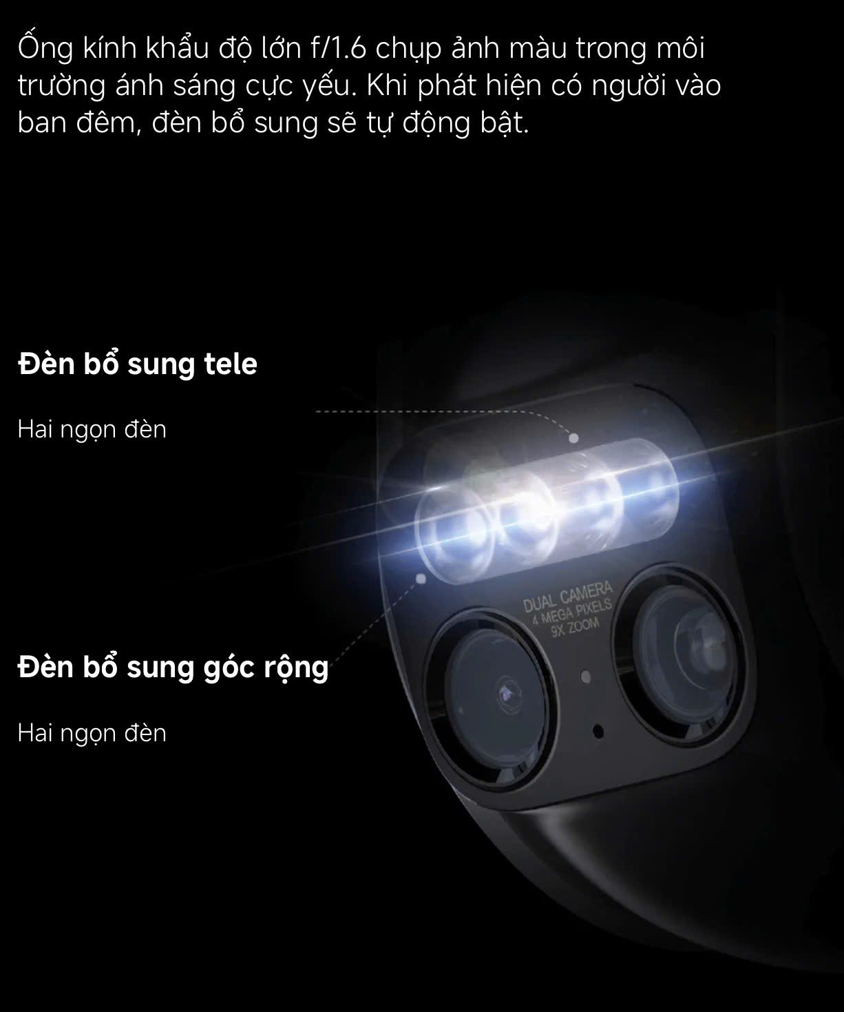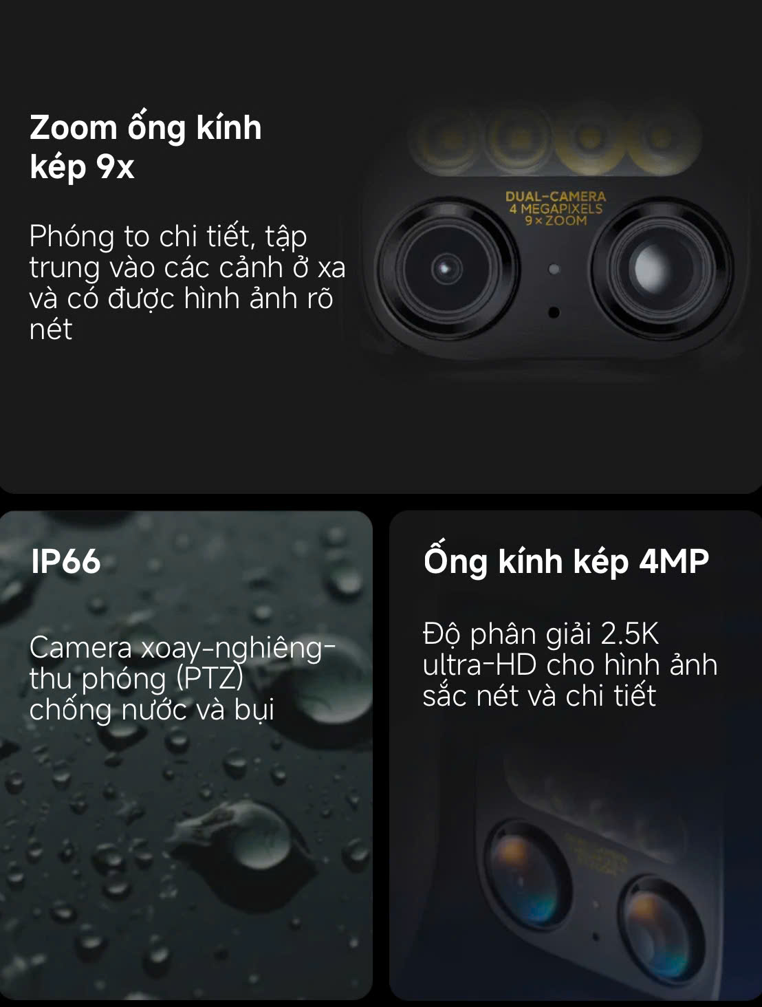 Được trang bị ống kính tele và ống kính góc rộng để đạt được khả năng zoom lai lên đến 9x và mang lại các chi tiết sống động và rõ nét.