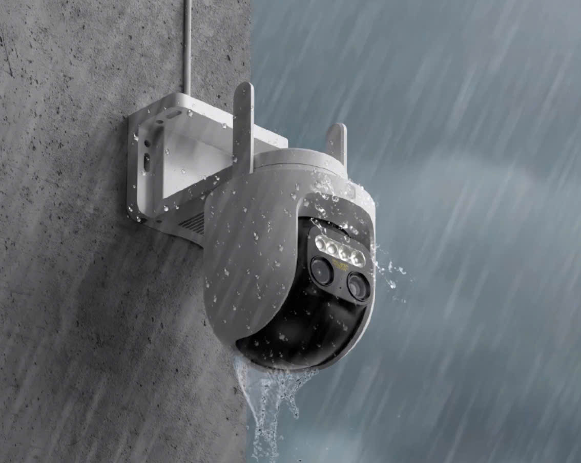 Camera PTZ xoay theo chiều ngang lên đến 355° và theo chiều dọc lên đến 100°. Thiết kế chống bụi và nước IP66 đảm bảo sử dụng ngoài trời đáng tin cậy, bất kể thời tiết giông bão.
