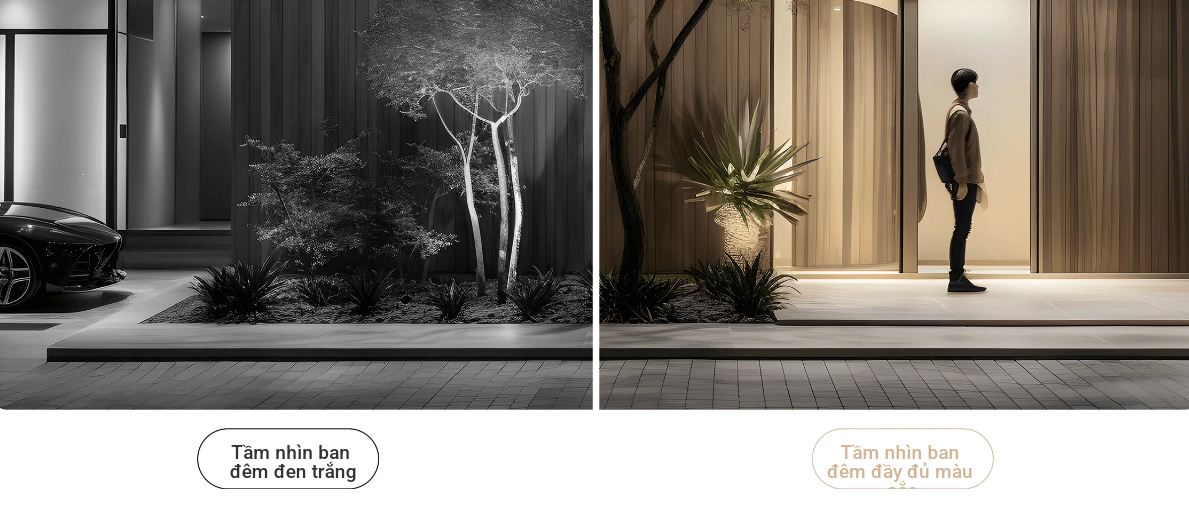 Máy ảnh đi kèm với đèn trắng tự động phát sáng vào ban đêm khi nhận ra hình người, cung cấp hình ảnh có màu trong môi trường tối.