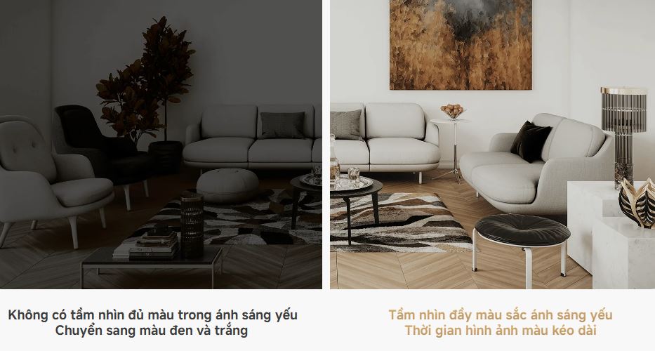 - Hỗ trợ nhìn màu lâu hơn trong môi trường thiếu sáng