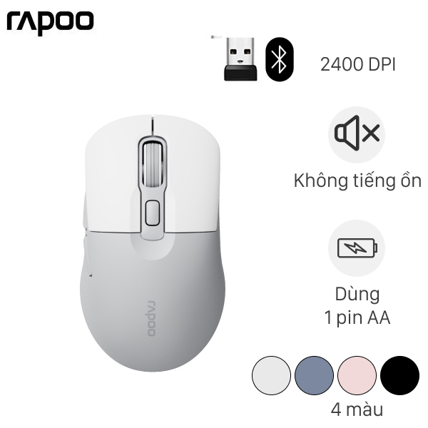 Chuột Bluetooth Silent Rapoo B2W là lựa chọn lý tưởng cho người dùng văn phòng và học sinh – sinh viên cần một chiếc chuột êm, bền, gọn nhẹ. Thiết kế đối xứng thời trang, khả năng bấm không tiếng động, cùng kết nối Bluetooth 5.0/3.0 giúp Rapoo B2W sử dụng linh hoạt trên laptop, PC, MacBook, iPad và cả điện thoại.