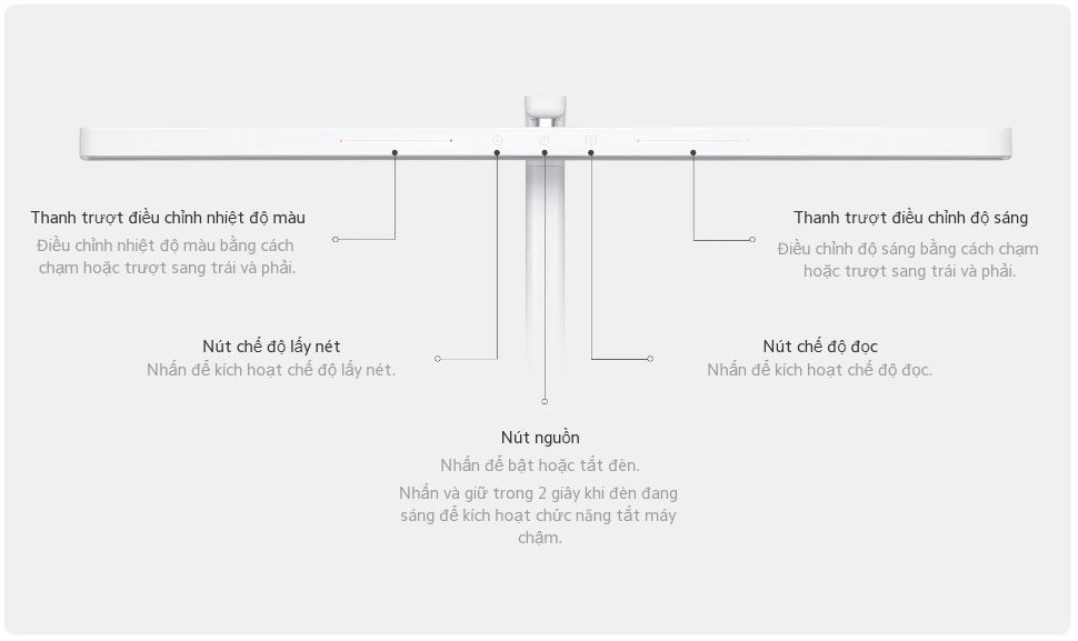 Khu vực điều khiển cảm ứng trực quan giúp dễ dàng điều chỉnh độ sáng và nhiệt độ màu