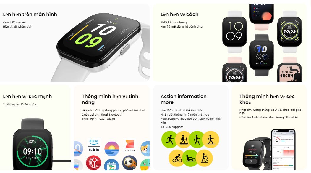 CácAmazfitBip 5 tích hợp tính năng tiết kiệm năng lượng và trực quanZeppOS 2.0, mang đến trải nghiệm người dùng mượt mà hơn, theo dõi sức khỏe lâu hơn và hệ sinh thái phong phú bao gồm các ứng dụng và trò chơi nhỏ có thể tải xuống
