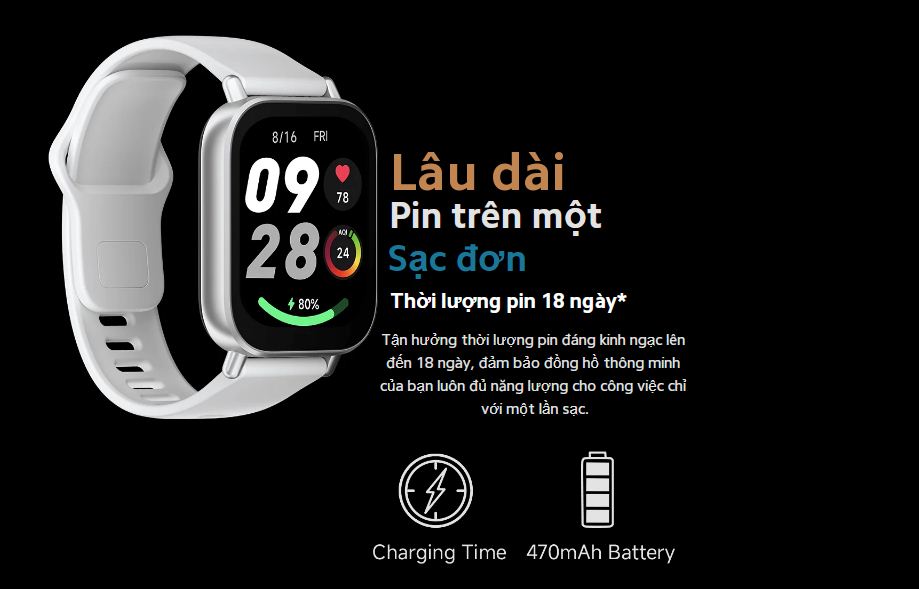 Với khả năng chống nước bắn và mồ hôi IPX8, thiết bị này được thiết kế để hỗ trợ lối sống năng động của bạn một cách dễ dàng và đáng tin cậy.