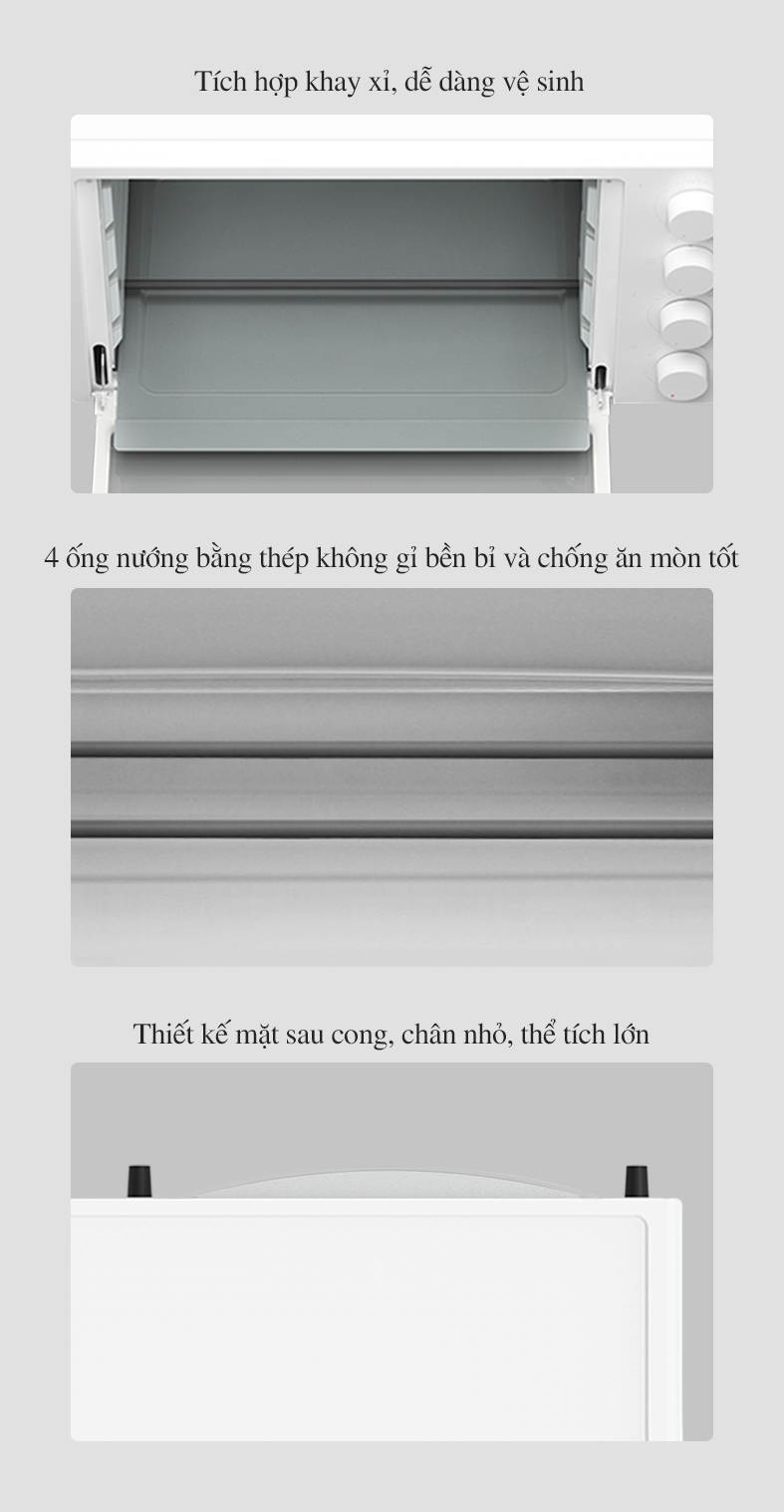 Lò nướng điện 32L Xiaomi Mijia với kích thước lớn có thể bố trí 2 ngăn rộng rãi và thuận tiện để đặt ở bất kì vị trí nào trong nhà bạn. Bên cạnh đó thiết kế vỏ ngoài màu trắng thanh lịch phù hợp với nội thất không gian nhà bạn, khiến không gian bếp trở nên hài hòa hơn. Bề mặt bên trong lò được gia công từ chất liệu hợp kim tôn cao cấp khó gỉ sét hay oxy hóa, dễ lau chùi vệ sinh. Bạn cũng có thể dễ dàng quan sát quá trình làm chín thức ăn thông qua hệ thống đèn chiếu sáng và cửa kính trong suốt của lò.