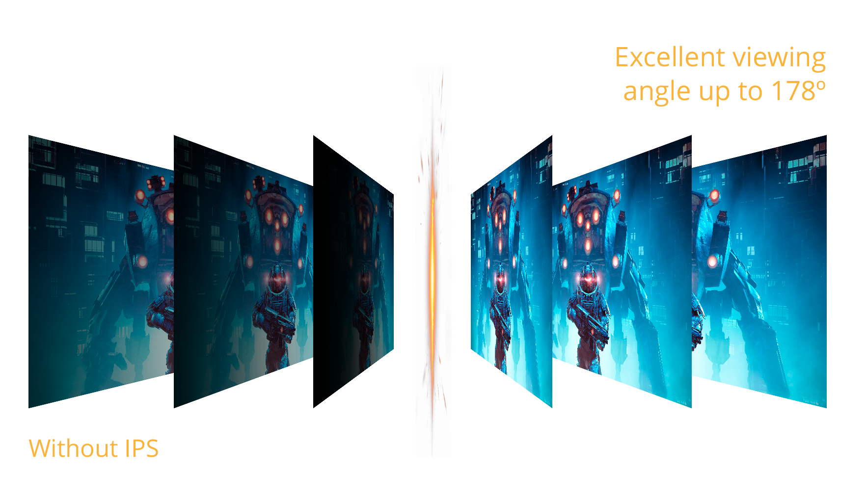 Tấm nền IPS hiển thị màu sắc sống động như thật nhưng rực rỡ và chân thực. Màu sắc không bị sai màu cho dù bạn nhìn màn hình từ góc độ nào