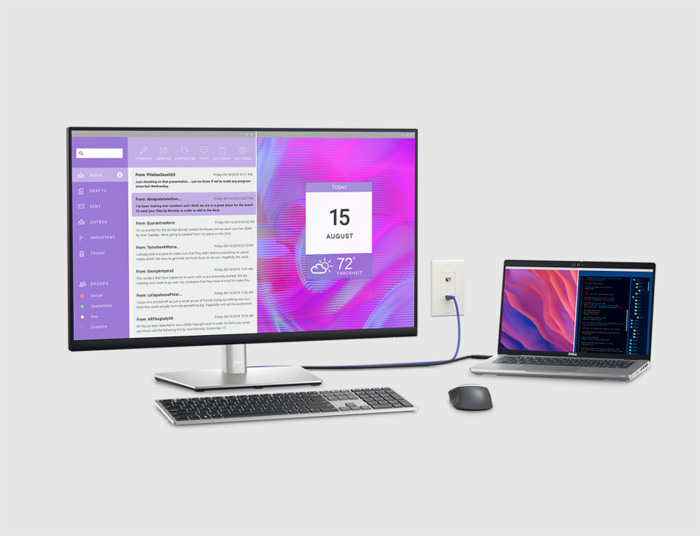 Sức mạnh của USB-C: Nhận công suất lên đến 90W qua USB-C và sạc máy tính xách tay của bạn (ngay cả khi màn hình tắt) với tính năng Luôn bật nguồn. Giải pháp cáp đơn này cũng tiết kiệm tới 72% thời gian thiết lập không gian làm việc i , giảm sự lộn xộn của cáp và truyền điện, dữ liệu và âm thanh — tất cả cùng một lúc.