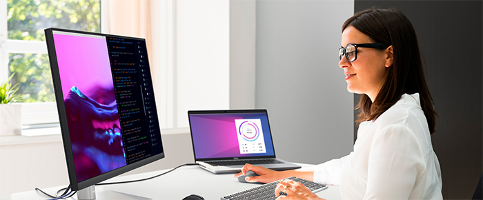 Kết nối với năng suất: Với các tùy chọn kết nối có dây như RJ45 và USB-C ® , màn hình của bạn cung cấp Ethernet i , nguồn, âm thanh và video đáng tin cậy — tất cả đều trong một thiết lập không lộn xộn.
