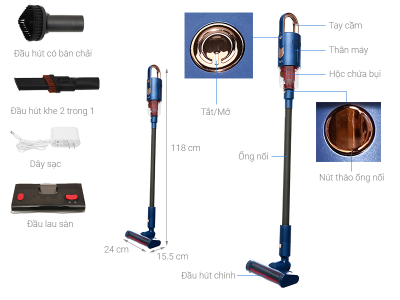 Máy hút bụi có tới 3 đầu hút giúp người dùng dễ dàng làm sạch mọi vị trí trong ngôi nhà cách nhanh chóng và nhẹ nhàng nhất