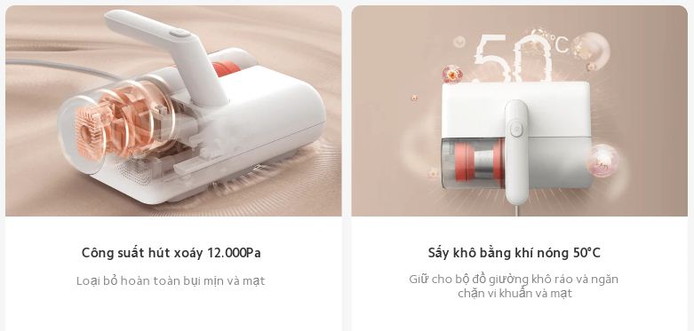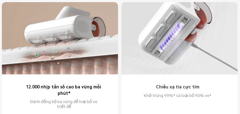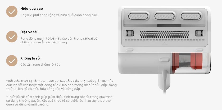 Để giải quyết môi trường vi mô phức tạp của bộ đồ giường, máy kết hợp giữa việc đập, chiếu tia UV, lực hút mạnh và khí nóng để đảm bảo làm sạch sâu bụi, mạt và vi khuẩn, mang lại bộ đồ giường sạch sẽ cho bạn giấc ngủ yên bình.