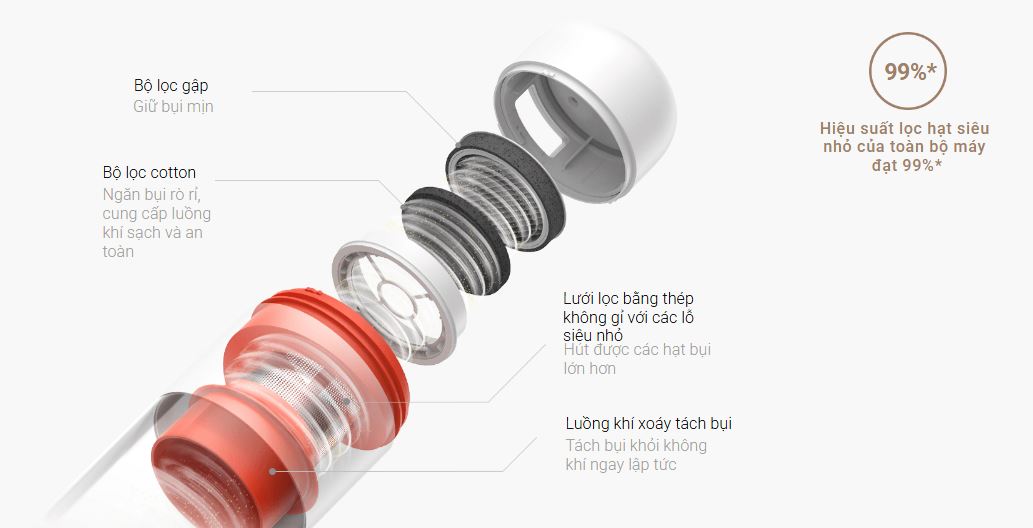- Lọc tới 99% hạt mịn