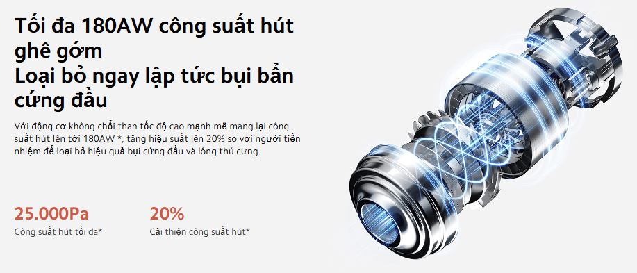 💥 Lực hút mạnh 180AW – làm sạch sâu mọi bề mặt