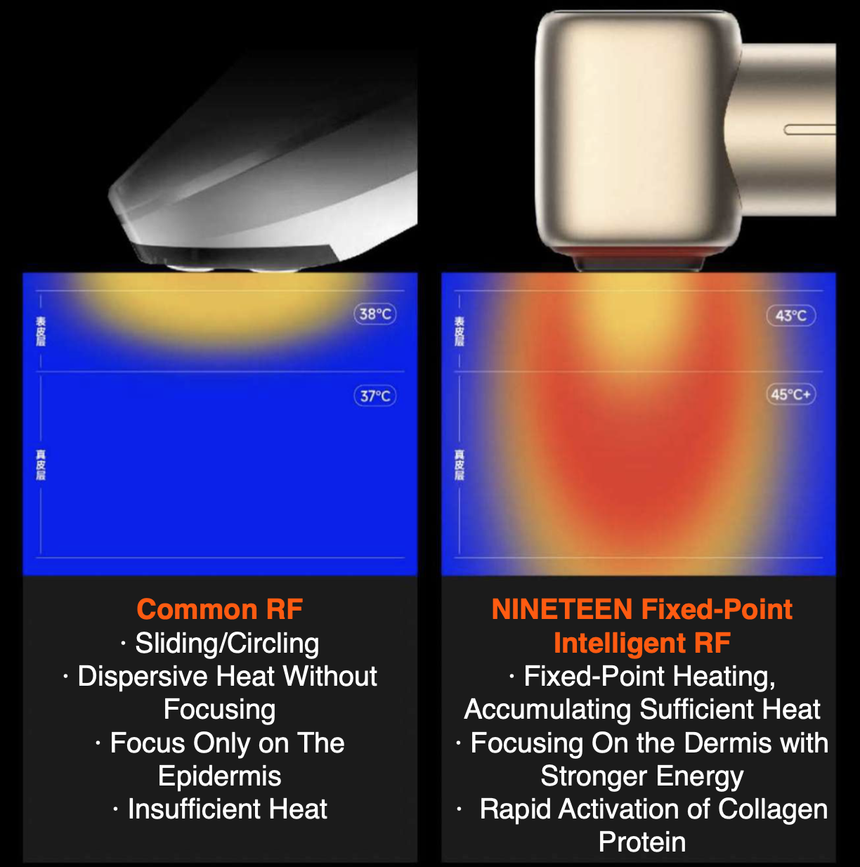 Điểm chăm sóc cố định, trường nhiệt tần số vô tuyến mạnh xuyên sâu hiệu quả hơn, tái tạo Collagen nhanh hơn Năng lượng cao 86J, thâm nhập sâu hơn, tập trung vào lớp hạ bì và tái tạo hàm lượng Collagen nhiều hơn