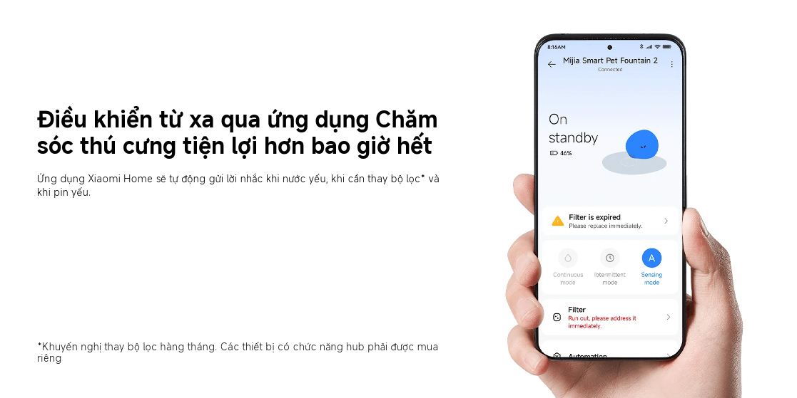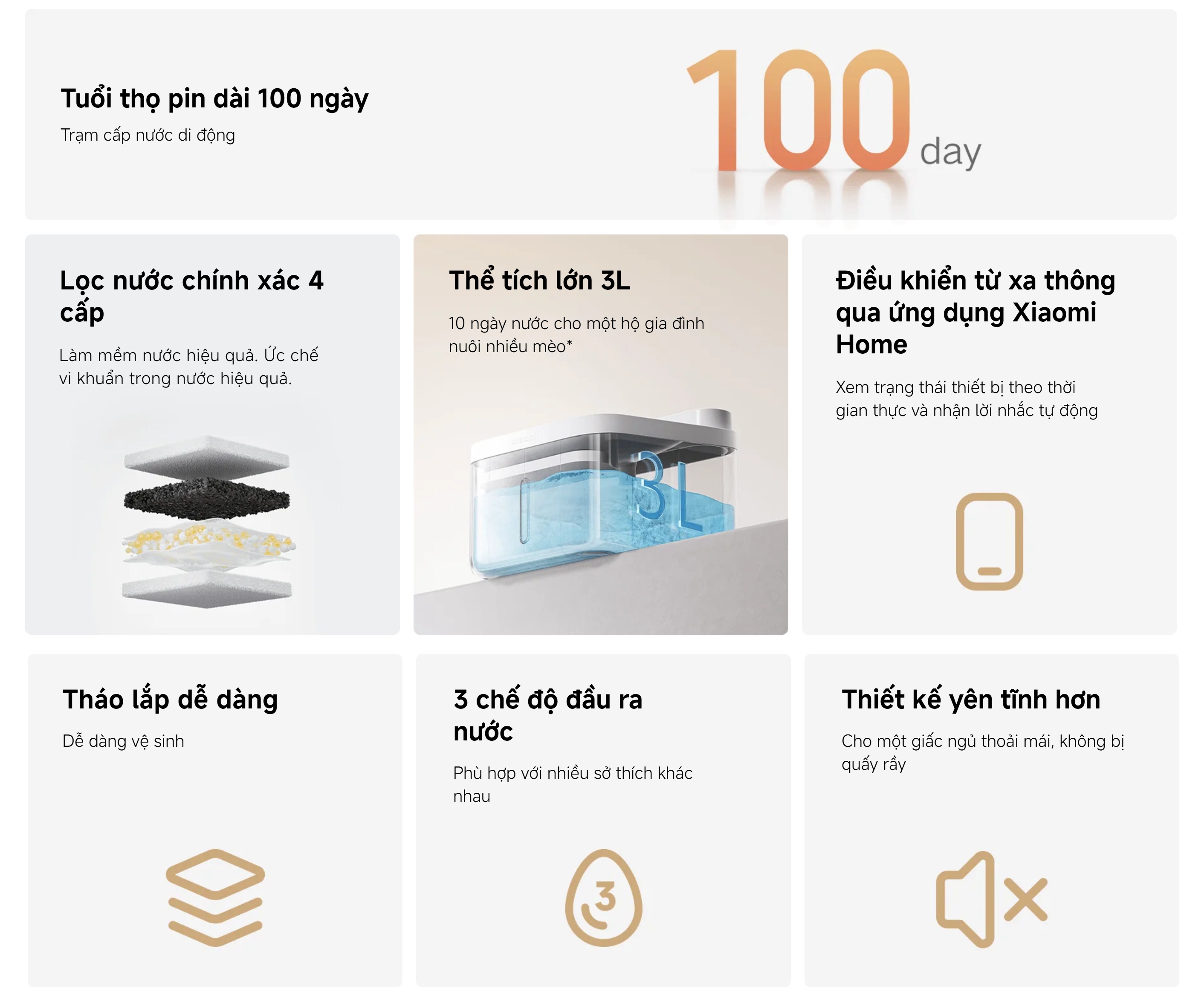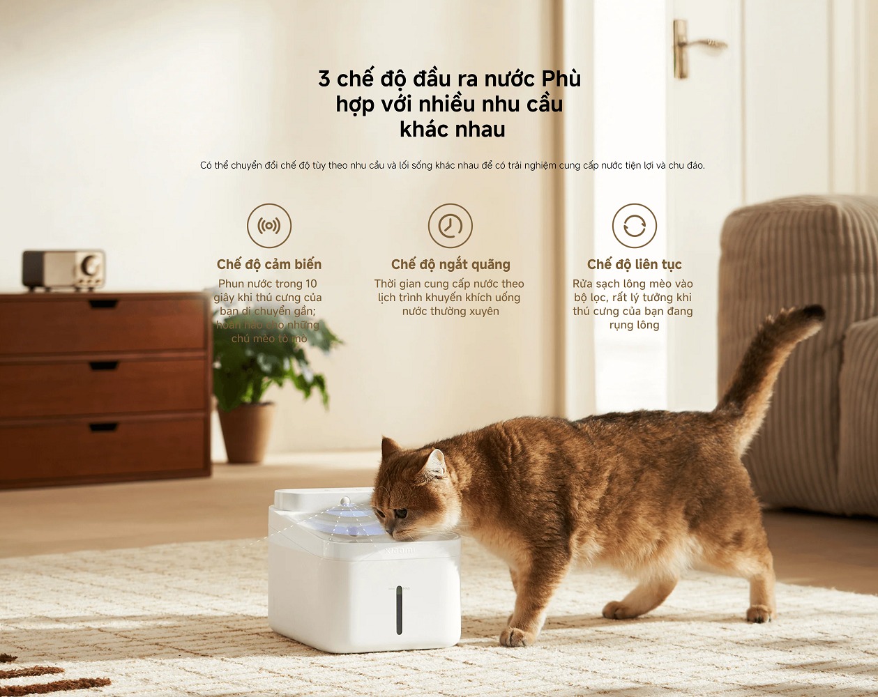 Có thiết kế cung cấp nước không gây tiếng ồn, nước chảy dọc theo mép đài phun nước nên bạn có thể đặt trong phòng ngủ mà không lo tiếng ồn làm ảnh hưởng đến giấc ngủ của mình.