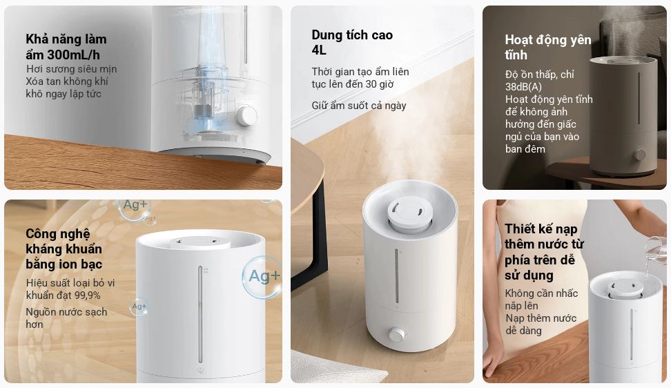 Dung tích cao 4L Tạo ẩm cả ngày