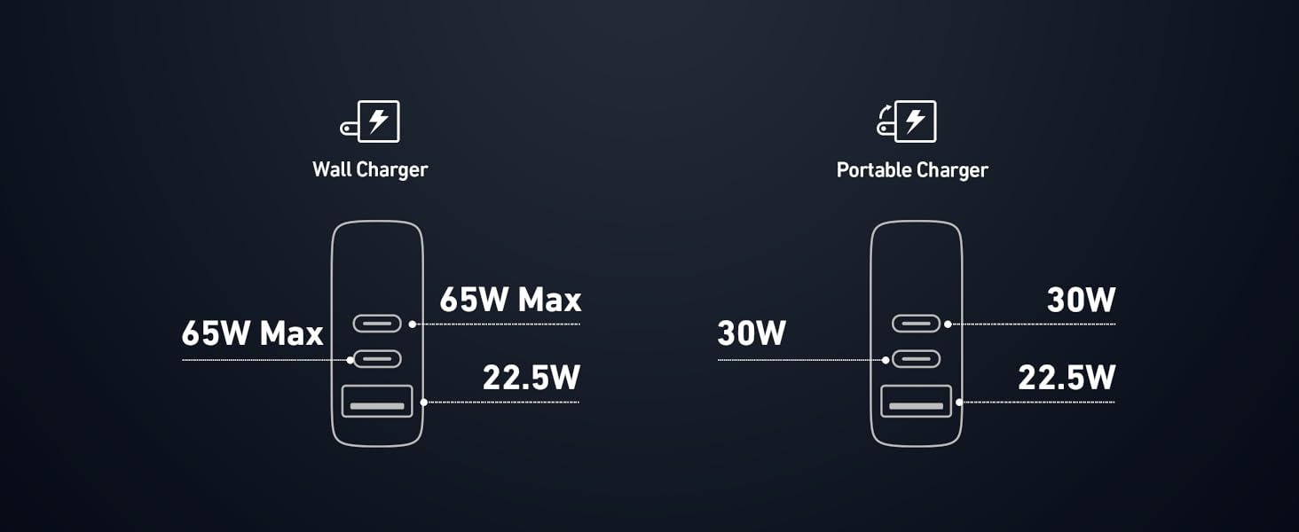 2 cổng USB-C + 1 cổng USB-A – dễ dàng sạc cùng lúc 3 thiết bị.