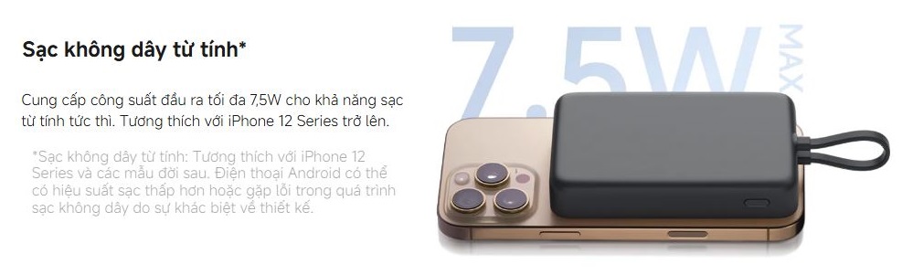 Ngoài ra, sản phẩm còn hỗ trợ sạc đồng thời có dây và không dây, phù hợp để sạc nhiều thiết bị cùng lúc. Với tích hợp nam châm mạnh ~13 N, khả năng bám hút tốt, đặc biệt tương thích với iPhone 12 trở về sau.
