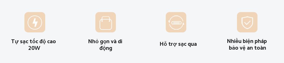 Sạc và sử dụng bất cứ khi nào và bất cứ nơi đâu bạn cần Chức năng sạc không dây có thể được sử dụng khi sạc dự phòng đang tự sạc, cho phép sạc đồng thời cả hai thiết bị bằng một dây cáp