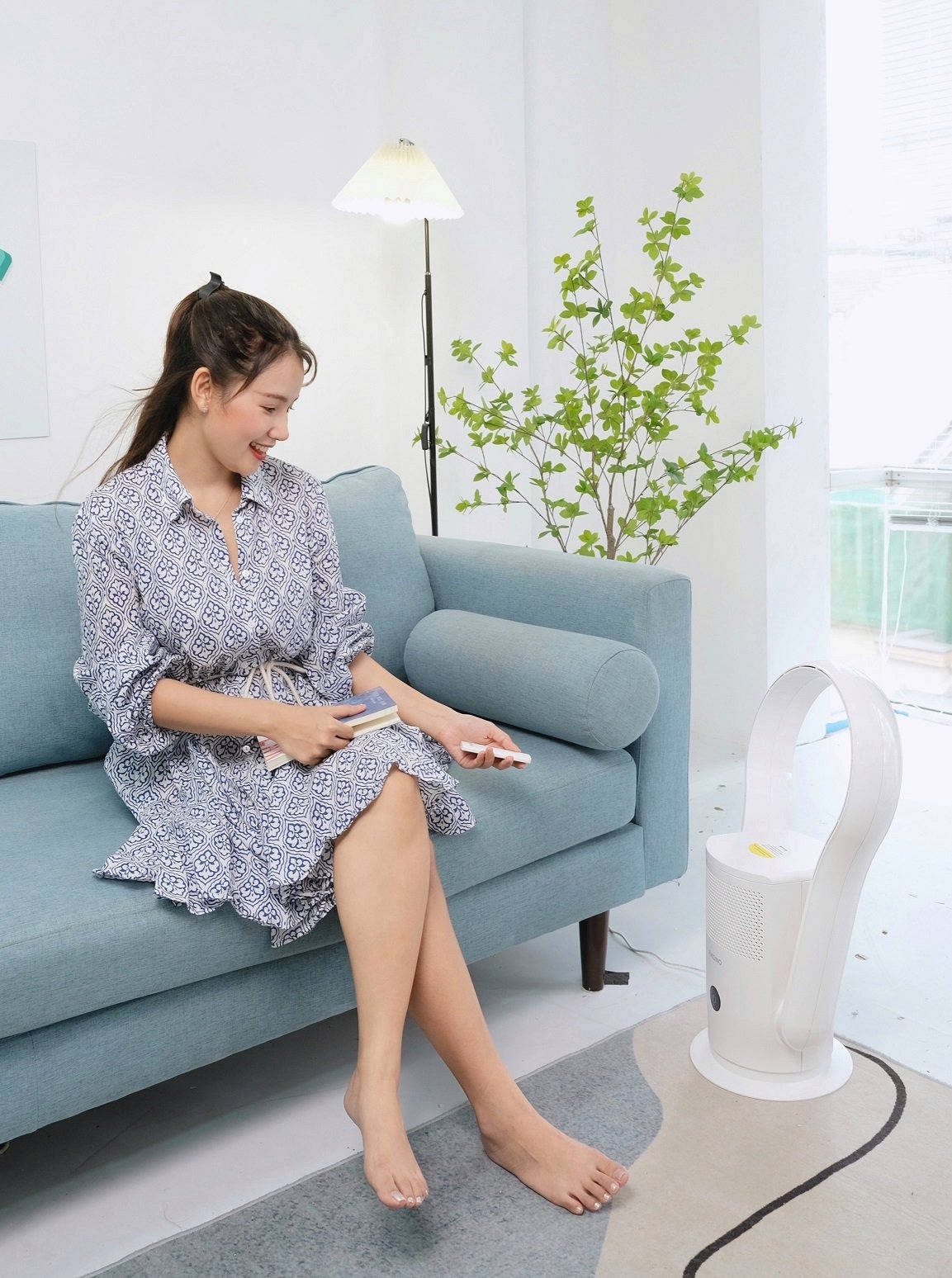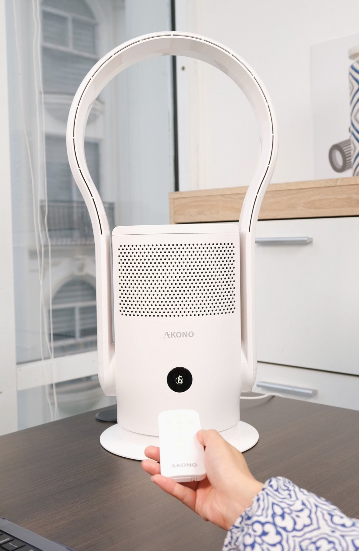 Ngồi thoải mái trên ghế sofa mà vẫn có thể điều khiển Quạt không cánh Akono một cách dễ dàng, với chiếc Remote cầm tay tiện lợi, điều khiển tất cả các tính năng của quạt như: Tăng/Giảm tốc độ gió, chế độ hoạt động, bật/tắt đèn UV diệt khuẩn, hẹn giờ, bật/tắt túp năng xoay đến vị trí mong muốn…