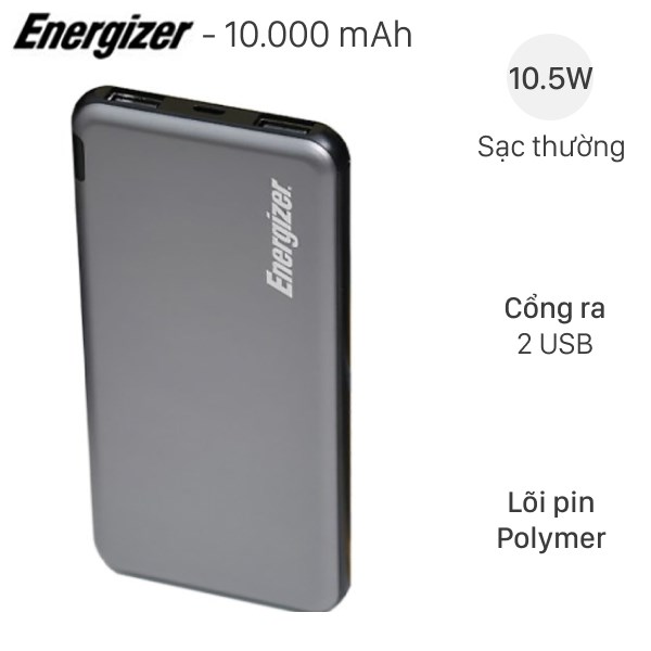 Pin sạc dự phòng Polymer 10.000 mAh Energizer UE10046 có thiết kế bo tròn, gọn nhẹ, dễ dàng mang theo để sử dụng khi cần