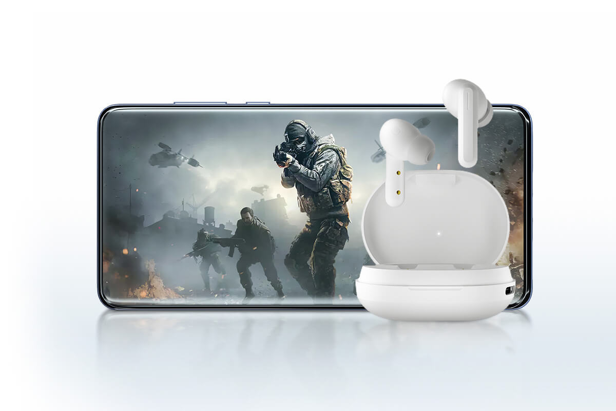 Giao tiếp dual-master đảm bảo kết nối ổn định trong từng giây. Nhấn đúp vào tai nghe bên trái để bật chế độ độ trễ cực thấp và đồng bộ hóa âm thanh và video.