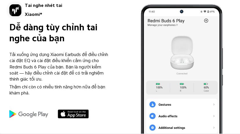 Kích thước Driver lớn 14.2mm mang đến khả năng tái hiện mọi nốt nhạc cũng như giọng hát được rõ ràng, mạnh mẽ hơn. Ngoài ra phần cứng của tai nghe Bluetooth Xiaomi Redmi Buds 6 Play còn đạt chứng nhận Cloud Audio nhờ vào khả năng tùy chỉnh đa dạng cũng như tạo ra hiệu ứng âm thanh tốt.
