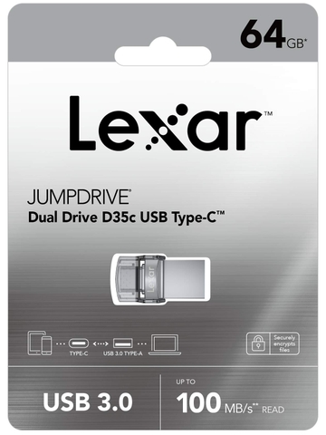 USB 64GB Lexar JumpDrive Dual Drive D35C LJDD35C064G-BNBNG là một thiết bị lưu trữ đa chức năng có dung lượng 64GB, được thiết kế bởi hãng Lexar. Nó có thể kết nối thông qua cổng USB 3.0 Type-C, mang lại khả năng truyền dữ liệu nhanh chóng và tiện lợi giữa các thiết bị hỗ trợ USB Type-C.