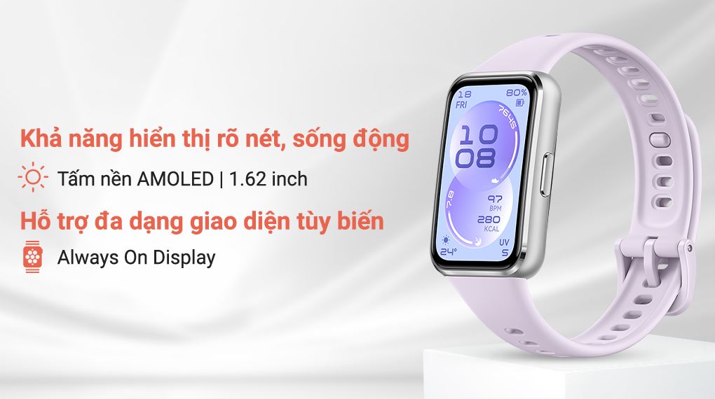 Huawei Band 11 được trang bị màn hình AMOLED 1.62 inch với độ phân giải 286 × 482 pixels, mang lại hình ảnh rõ nét và màu sắc sống động.