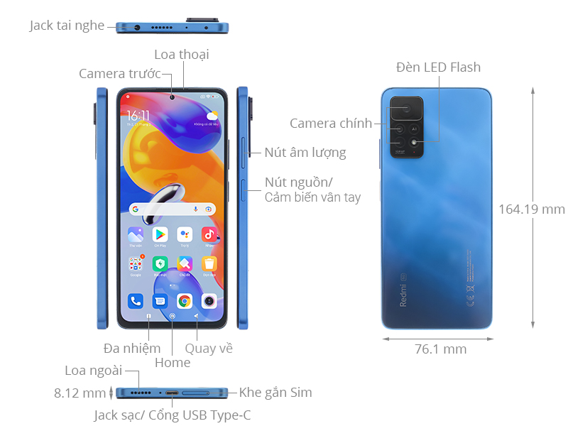 Điểm nổi bật ở phần thiết kế của Redmi Note 11 Pro chính là cụm camera khá lớn và lồi so với mặt lưng, mặt lưng có chất liệu bằng kính đã được làm phẳng đi. Khung viền bằng nhựa cũng được bo tròn và vát phẳng rất liền mạch, mức độ hoàn thiện tốt, không có hiện tượng ọp ẹp khi mình sử dụng chiếc máy này.